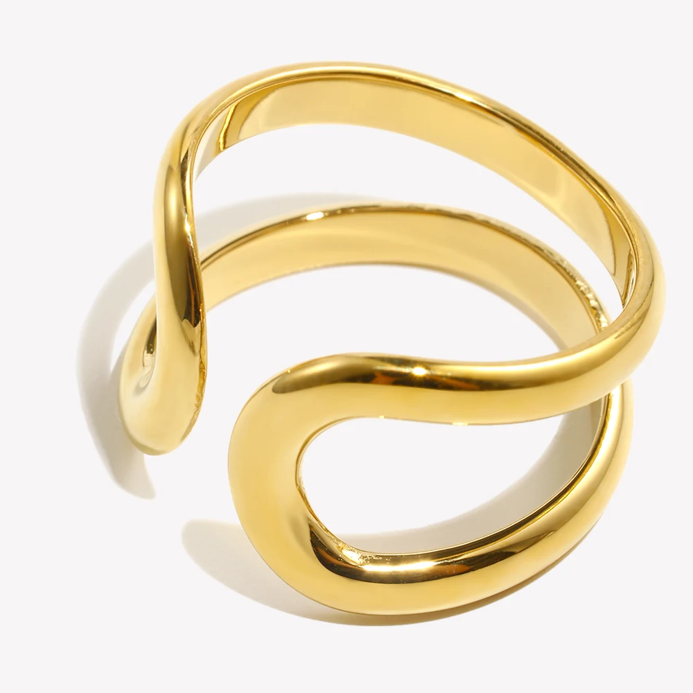 E.B.belle Smooth Double Layers Adjustable C-shaped Ring Stainless Steel 18K Gold Plated Popular Women Jewelry Charm