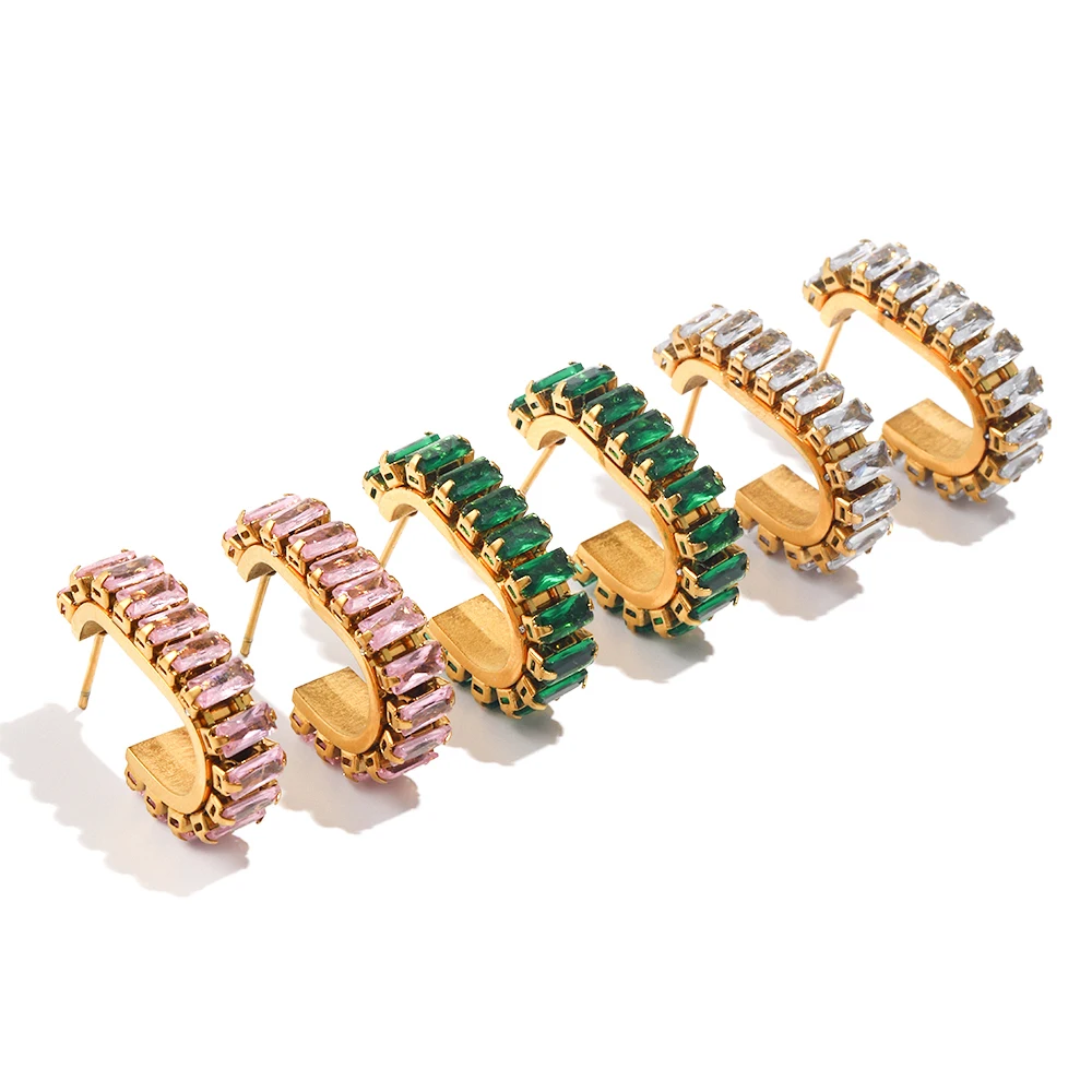 E.Bbelle Stainless Steel Colorful Zircon Hoop Earring Gold Plated Sweet Statement Tarnish Free Hypoallergenic Women's Jewelry