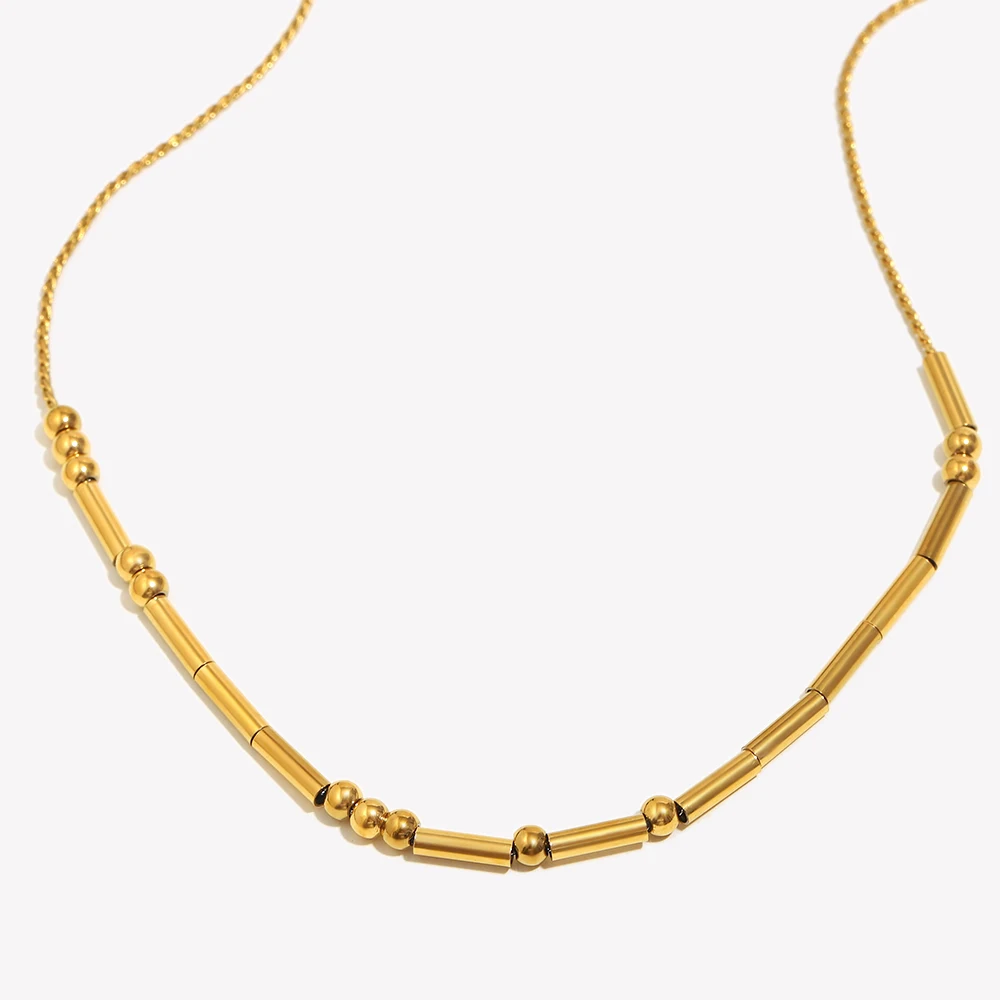E.B.belle Fashion Design Round Beads Strung On Tube Necklace Stainless Steel Women Fashion Party Chic Jewelry Accessories