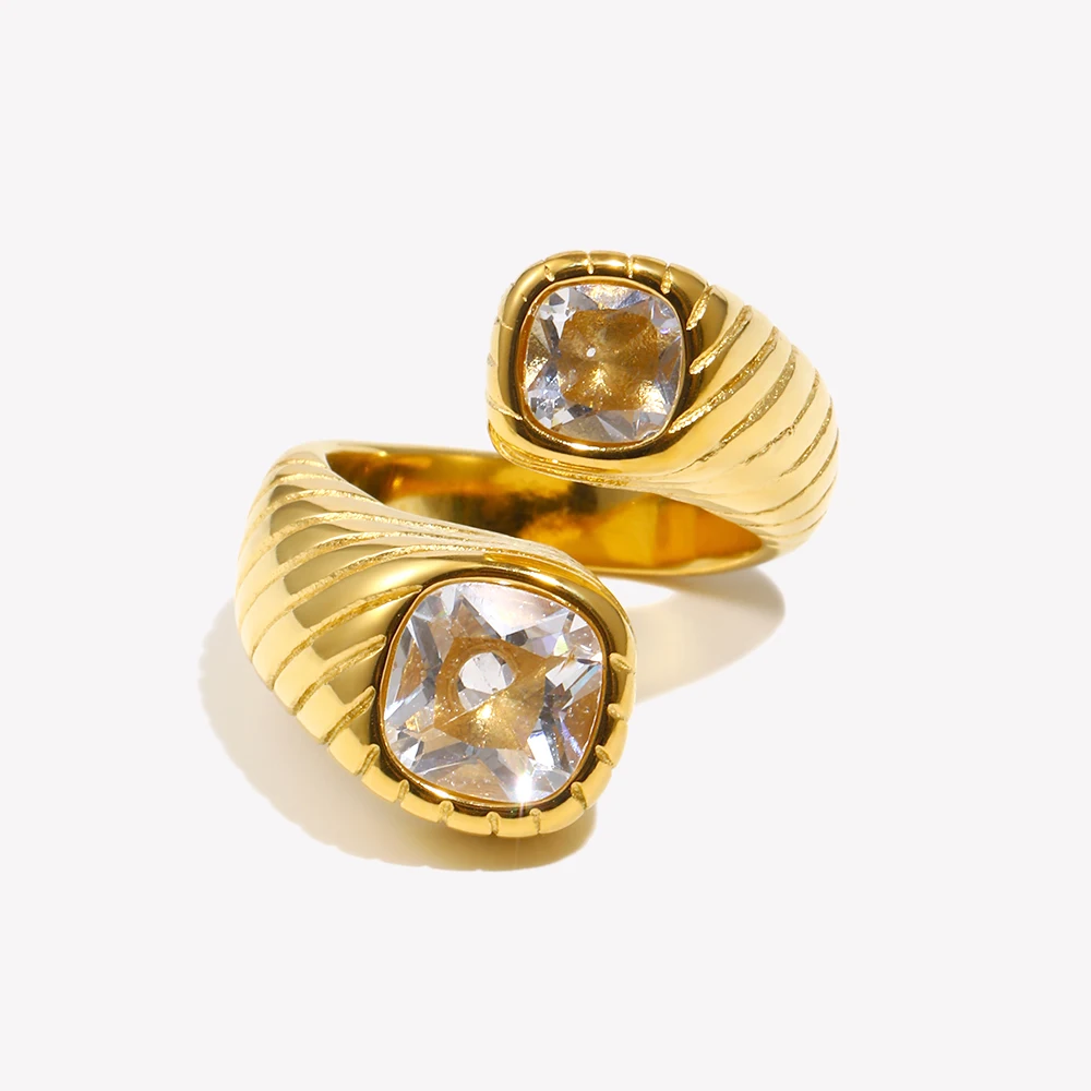 E.B.belle Hypoallergenic Double End Zircon Stripe Pattern Opening Ring Creative Stainless Steel Ring Jewelry For Women Girls