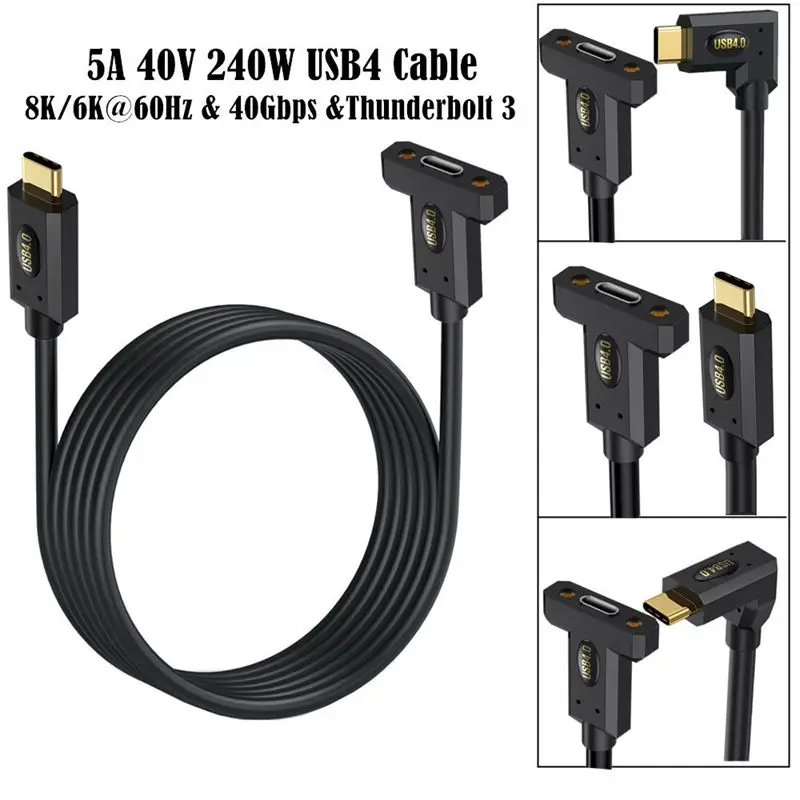 30cm 60cm 1m 2m USB4 Type-C Male to Female with Ear Screw Fixed Panel Extension Cable 8K 60HZ Thunderbolt 4 Multifunctional 240W