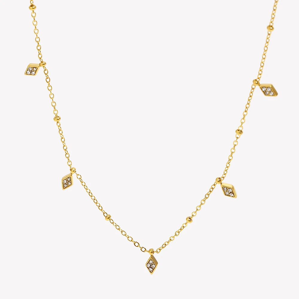 E.B.belle New Clip Beads Rhoumbs Zircon Pendants Necklace 18K Gold Plated Stainless Steel Stackbale Jewelry Accessories