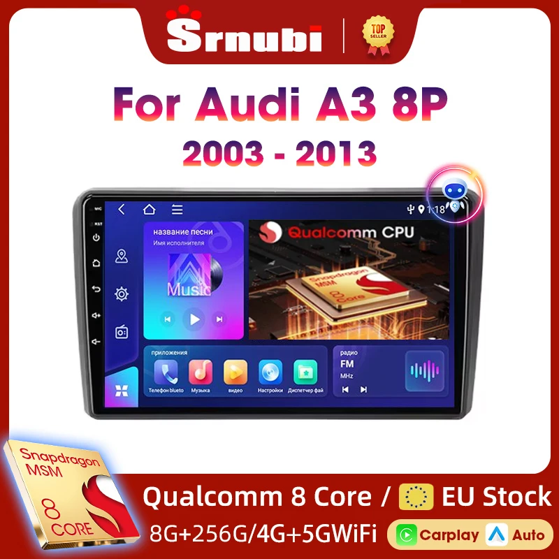 2 Din Android Auto & Carplay For Audi A3 2 8P 2003 - 2013 S3 2 2006 - 2012 RS3 1 2011 2012 Car Radio 4G GPS Player Multimedia
