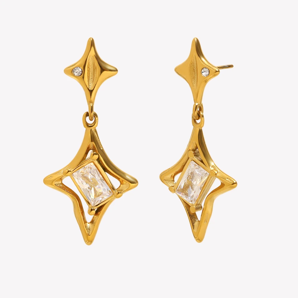 E.B.belle Stainless Steel PVD Plated Shiny Clear Zircon Star Charm Earrings Party Wedding Women Ear Jewelry Accessories