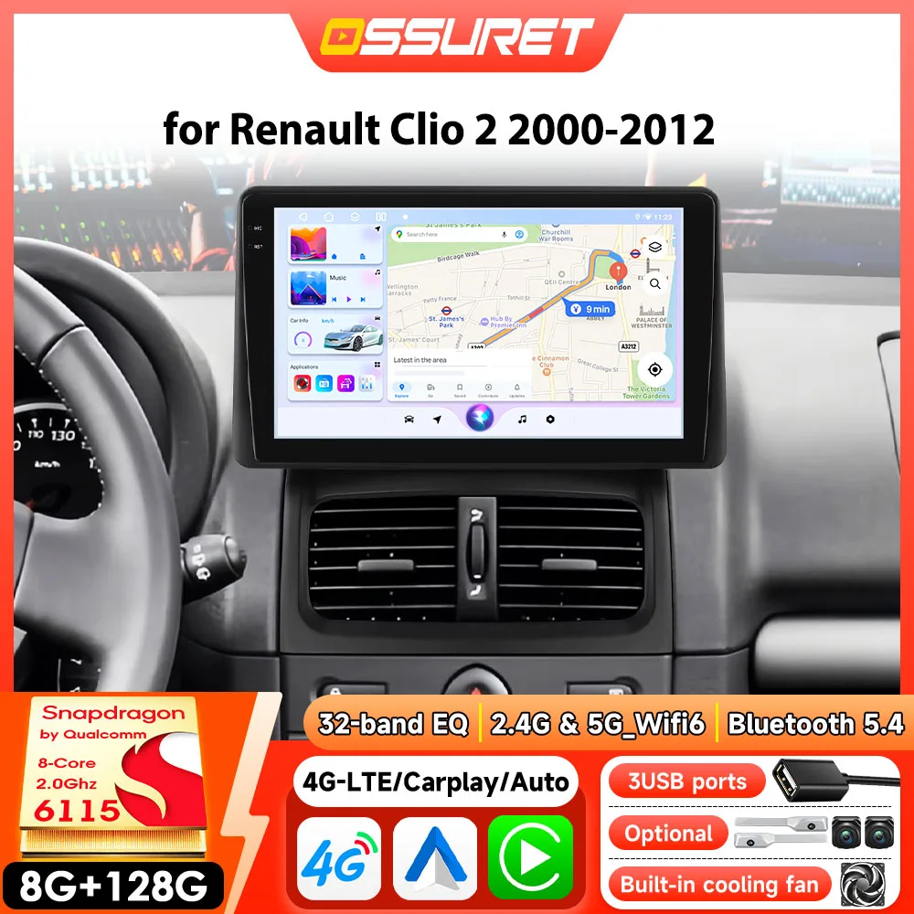 Car Intelligent Multimedia for Renault Clio 2 2000-2012 Autoradio Carplay Android Auto 4G DSP 2din GPS Navigation by Snapdragon