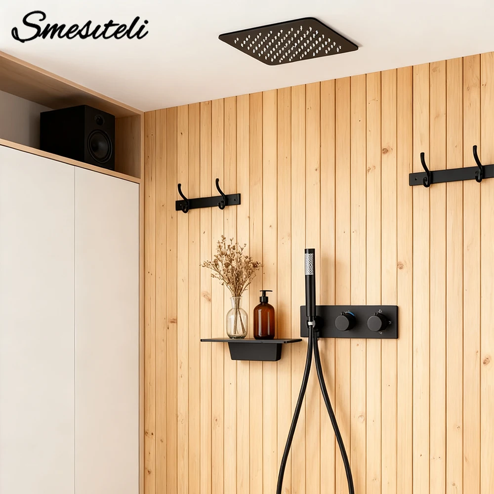 Gunmetal Concealed Shower System Rain Bathroom Embedded Shower Faucet Set with Tub Spout