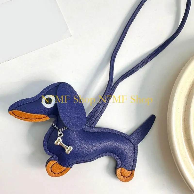 N7MF Fashionable Puppy Keychain Pendant Adorable Sausage Dog Keyring PU Leather Keychain Accessory for Fashion Lovers