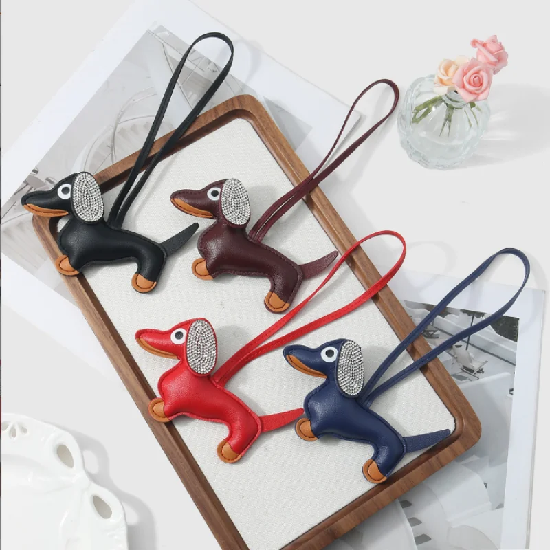 Cute Dachshund Dog Keychain PU Leather Animals Keyring Hanging Ornament Backpack Handbag Charm Gift for Men Women