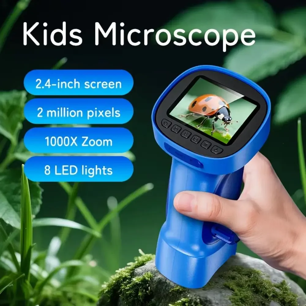 With 2.4" IPS Screen Digital Microscope 1000x Zoom 2 Megapixels Kids Mini Microscope 8 LED Handheld Digital Magnifier