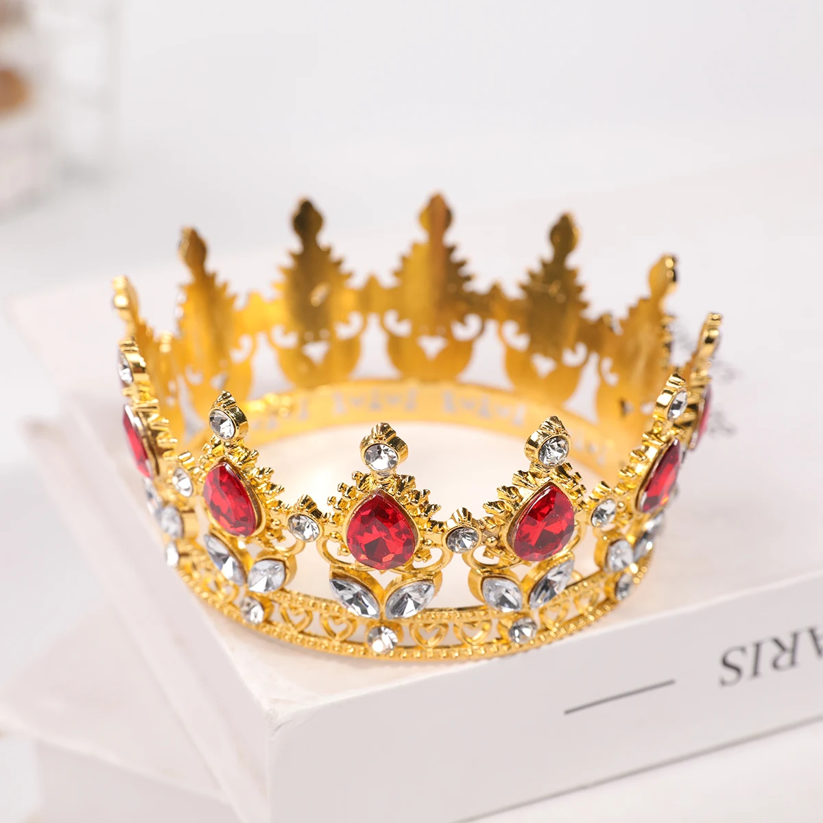 European Princess Queen Tiara Round Baroque Pageant Crowns Crystal Full Crown King Tiaras Bridal Wedding Hair Accessories