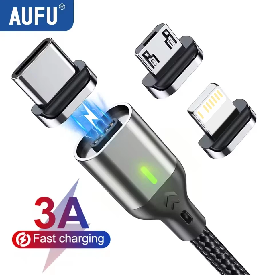 AUFU Magnetic Cable 3A Fast Charging Micro USB Type C Magnetic Charging Cables USB Data Charging Wire for iPhone Samsung Xiaomi