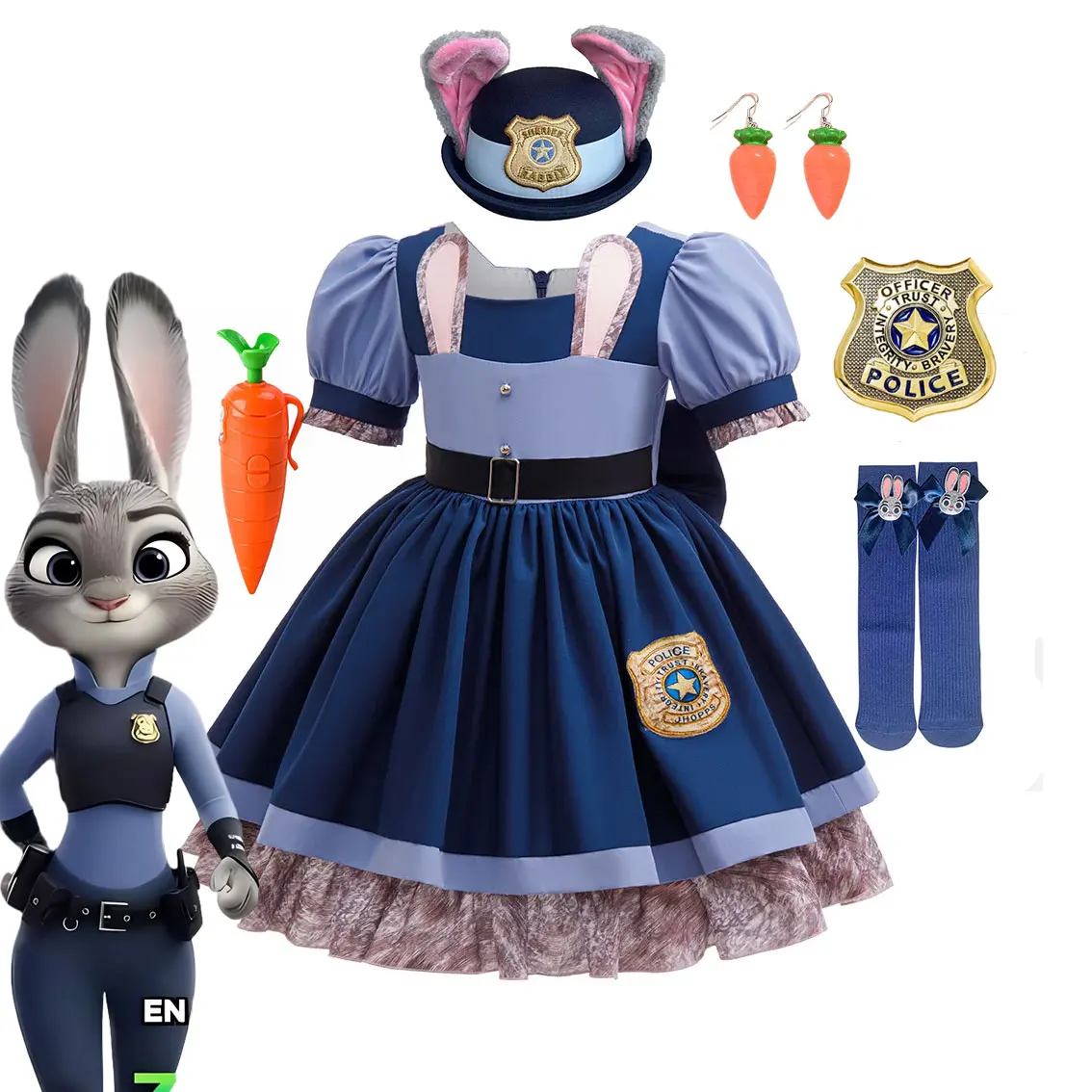 Brave Bunny Adventure Judy Cosplay Costume Girls Zootopia 2 Carnival Role Play Clothing Rabbit Officer Uniform Dress Kid Apparel