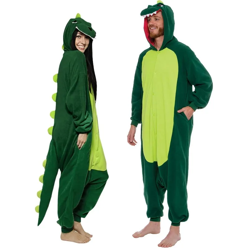 Dinosaur Adult Onesie - T-Rex Halloween Costume - Plush Dino Cartoon Pajamas One Piece Animal Pajamas for Women and Men