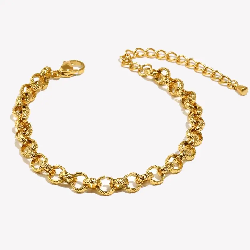 E.B.belle Ear Grain Handmade Round Chain Bracelet 316L Stainless Steel Bracelet for Women 14K Gold Plated Accessories