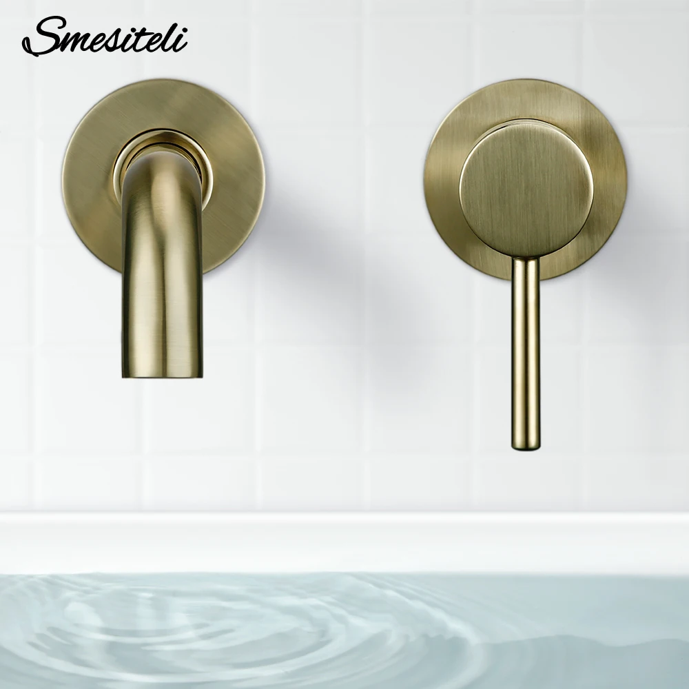 Basin Faucet Bathroom Mixer Sink Tap Wall Mounted Brass Matt Black With Single Handle Hot Cold Water White Rose Gold Set