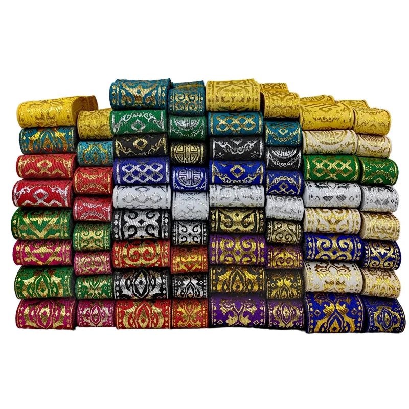 7 Meters 33/50MM Gold Silver Glitter Traditional Chinese Geometric Pattern Embroidery Ribbon Trim For DIY Clothes Bag Fabric