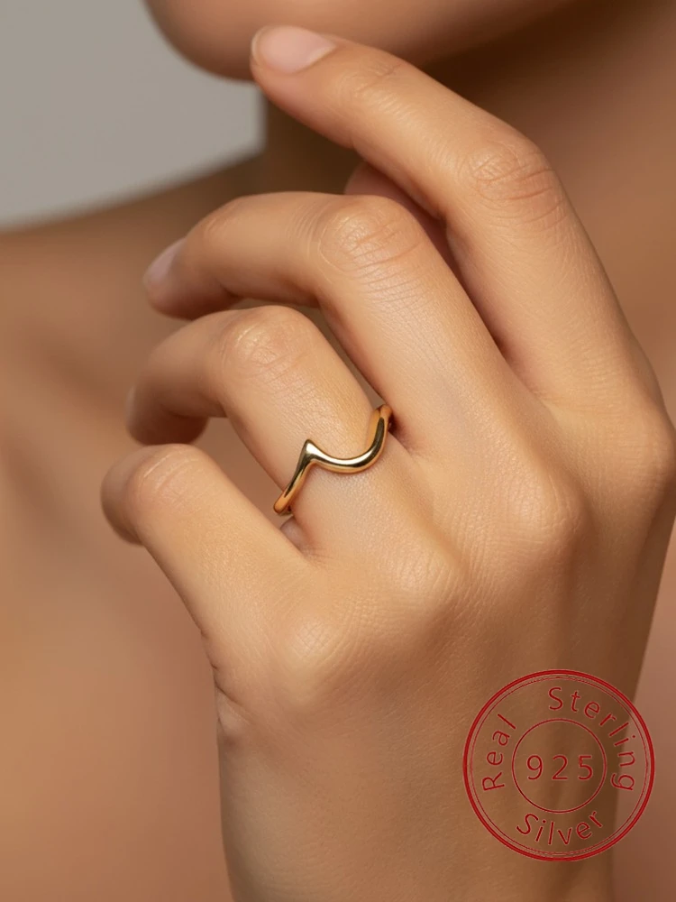 925 Sterling Silver Minimalism Large Radius Curved Ring For Women Anniversary Engagement Daily Wear High Quality Fine Jewelry