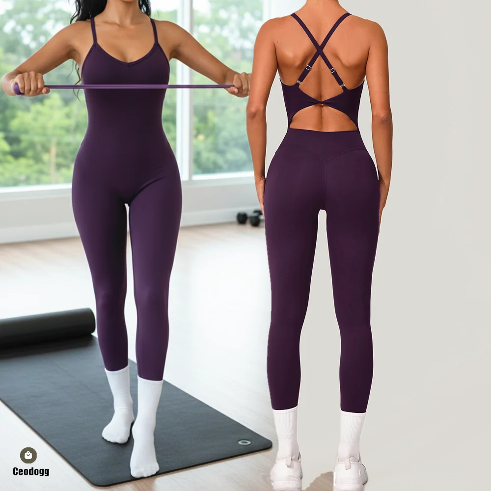 Pad Women's High-Waisted One Piece Bodysuit U-Neck Cross Back Adjustable Spaghetti Straps Butt Lifting Fitness Jumpsuit XP135