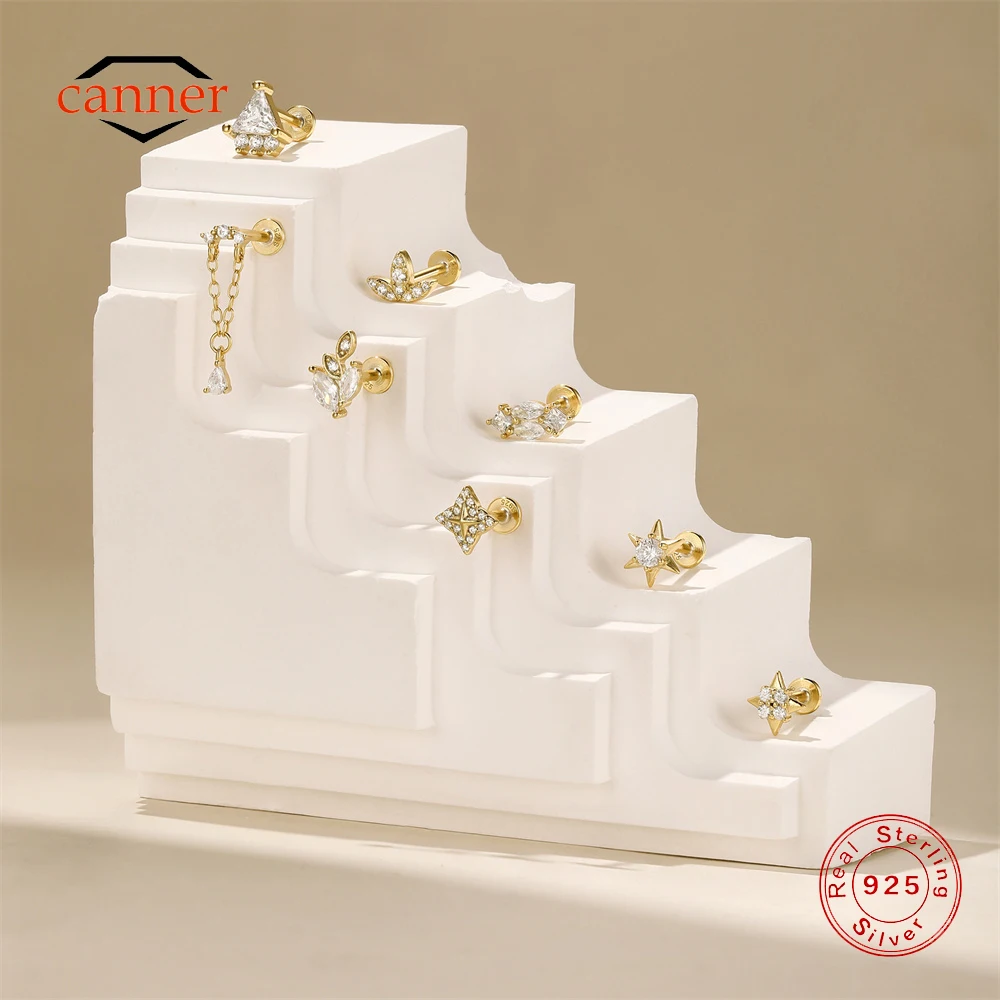 CANNER 1PC 925 Sterling Silver Four Pointed Star Clover Horse Eye Flat Head Puncture Stud Earring For Women Ins Earring Jewelry