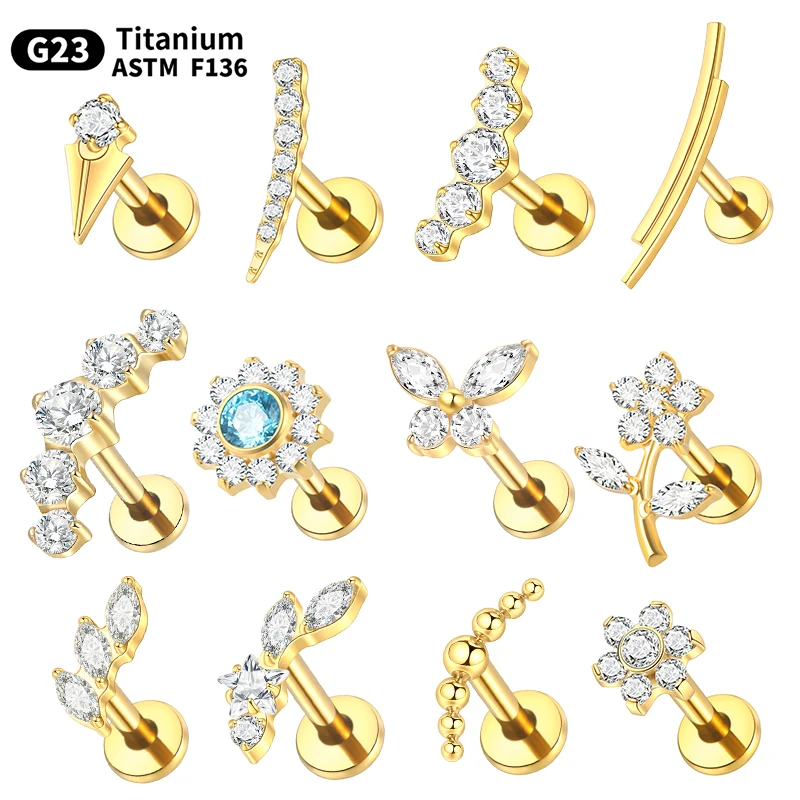 1PC Titanium Ear Cartilage Piercings Flat Back Stud Earring Internal Thread Butterfly Cross CZ Helix Tragus Piercing Jewelry 16G