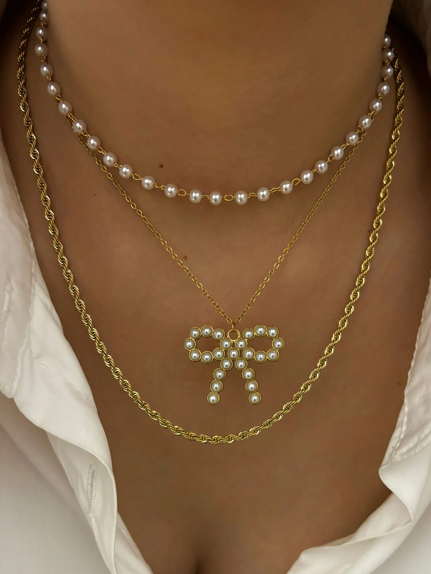 Peri'sbox Trendy Elegant Geometric Round Imitation Pearl Bowknot Pendant Necklace for Women Anti-Tarnish Stackable Daily Jewelry