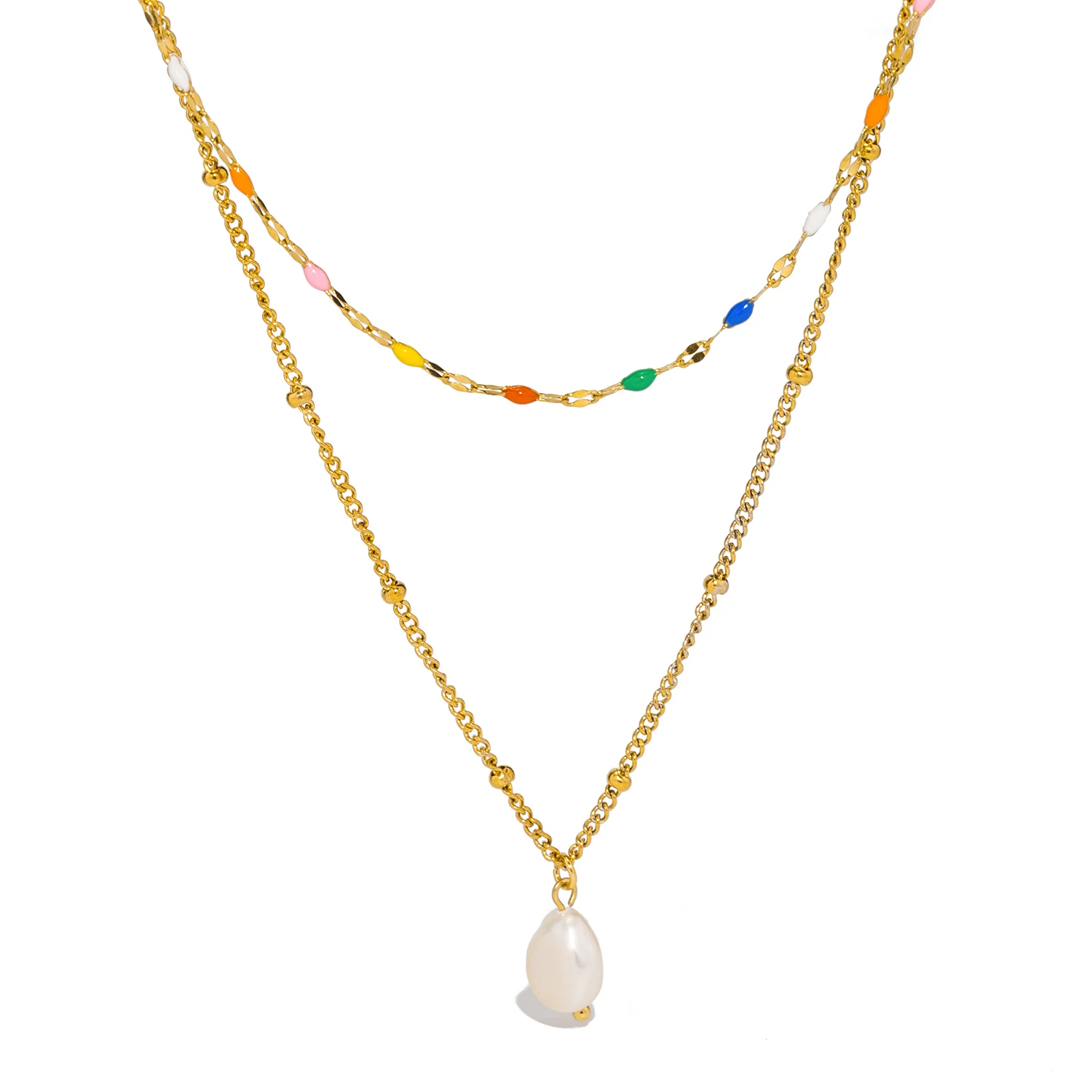 UHBINYCA Double-layer Layered Necklace for Women, Stainless Steel Chain Pearl Charm Pendant Necklace for Daily Jewelry