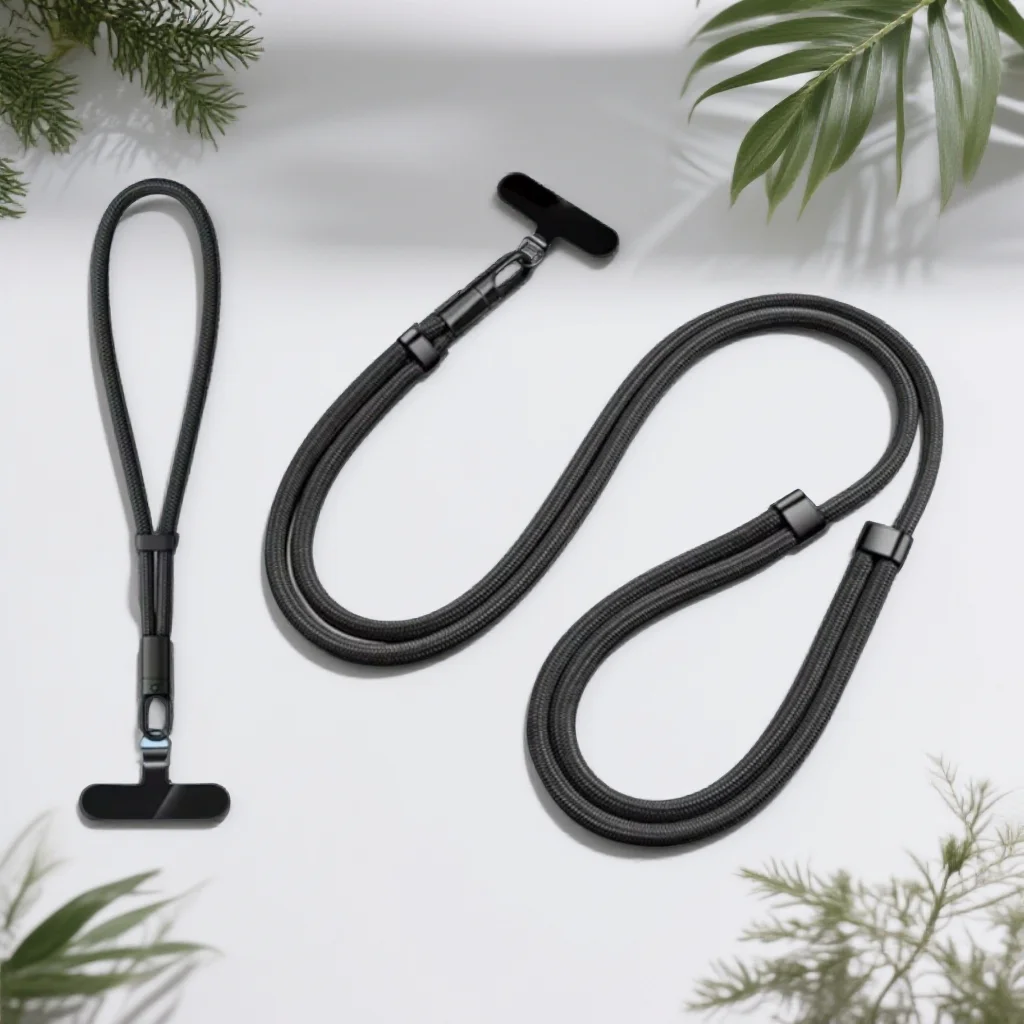 Adjustable Self-Locking Anti-Loss Lanyard for Mobile Phones with Weaving Card Short Wrist Strap And Long Neck Strap Compatible w
