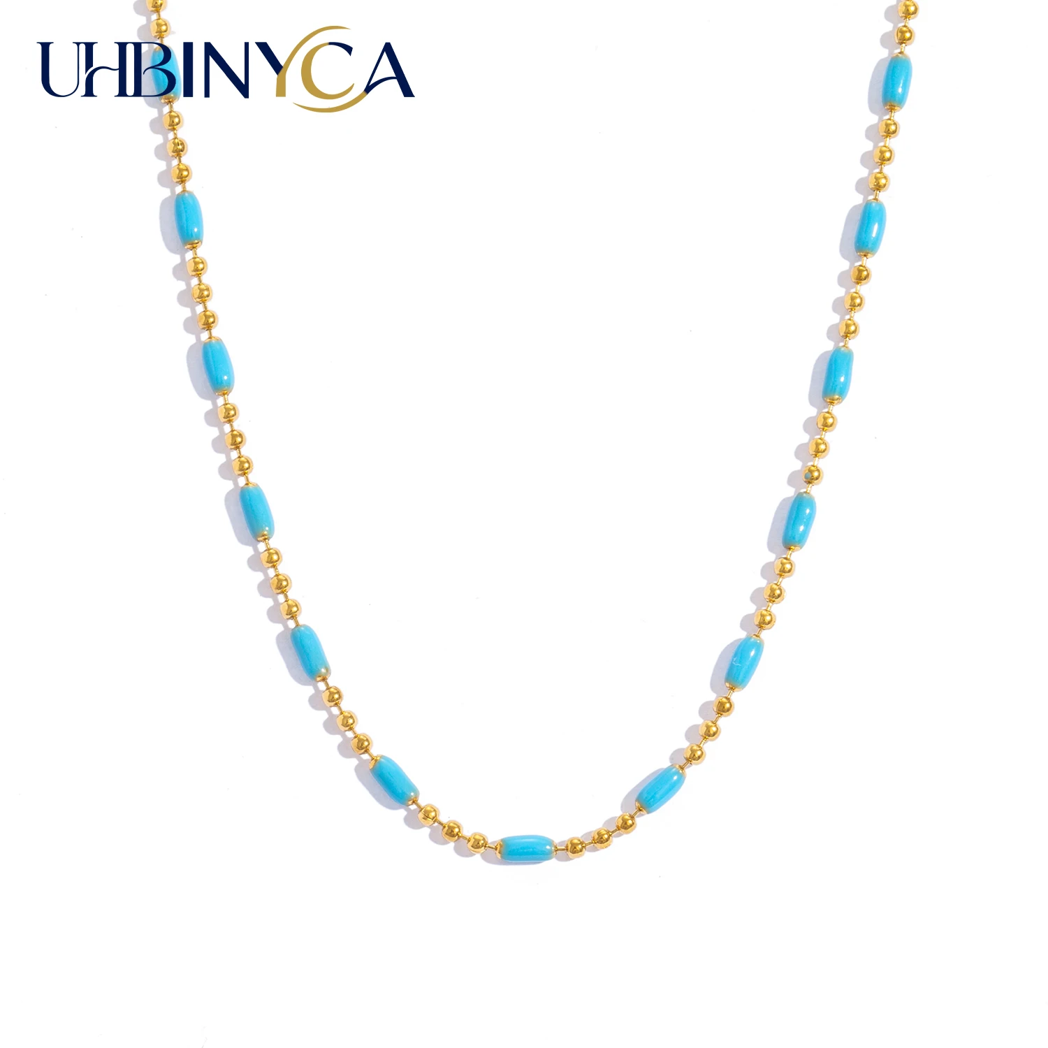 Blue Cold Enamel Necklace for Women, Minimalist Chain with Dainty Accent, 18K Gold Plated Stainless Steel Elegant Jewelry Gift