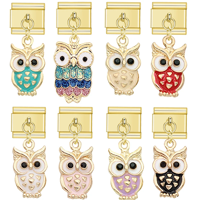 New 2024 Italian Charm Bracelets Owl Enamel Charm Kit Link Fit 9mm Stainless Steel Accessories Cute Bangle Jewelry DIY Making