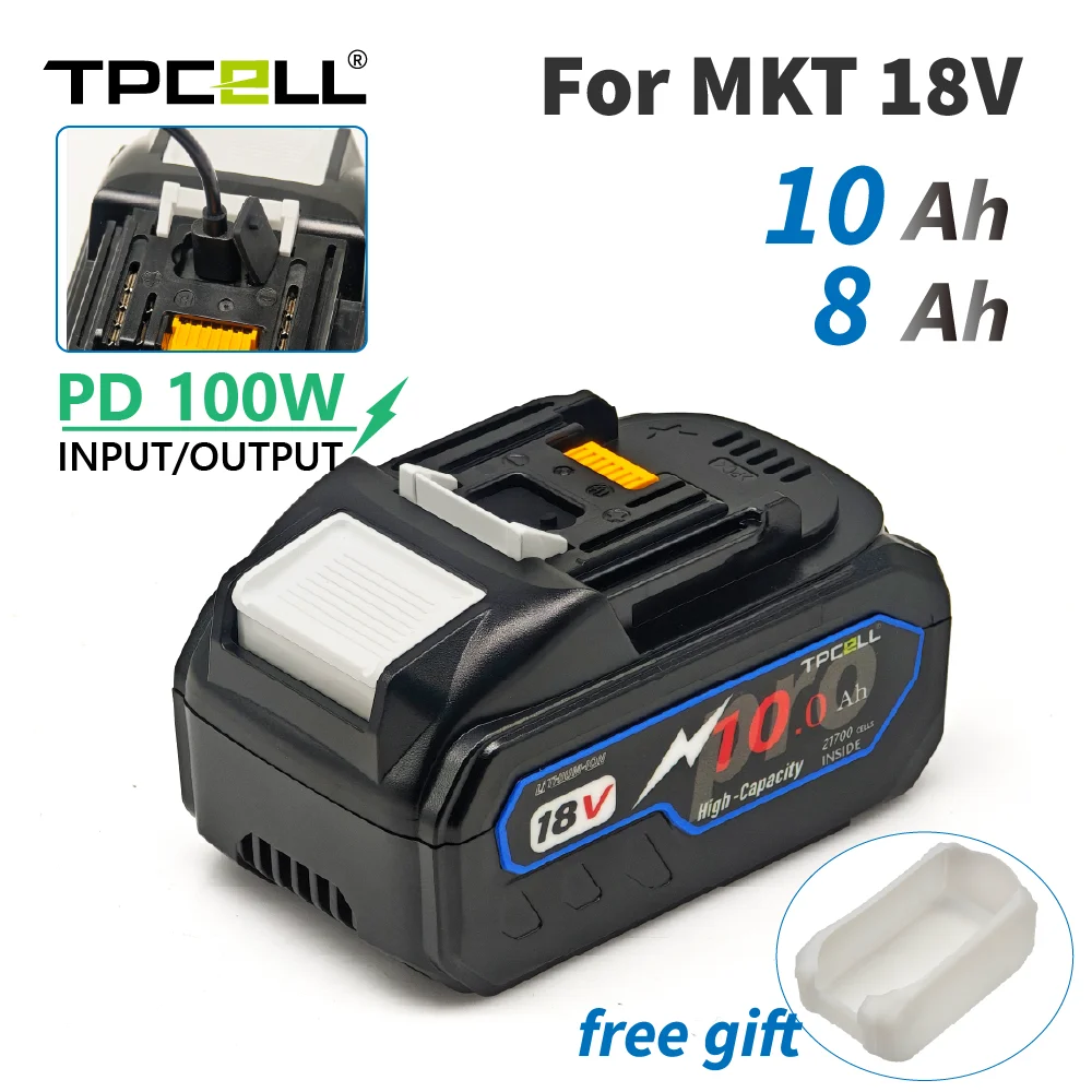 TPCELL New PD100W 8Ah/10Ah For MAKITA 18V with USB-C Connector 21700 Tabless cells Replacement Battery Power Tools Li-ion
