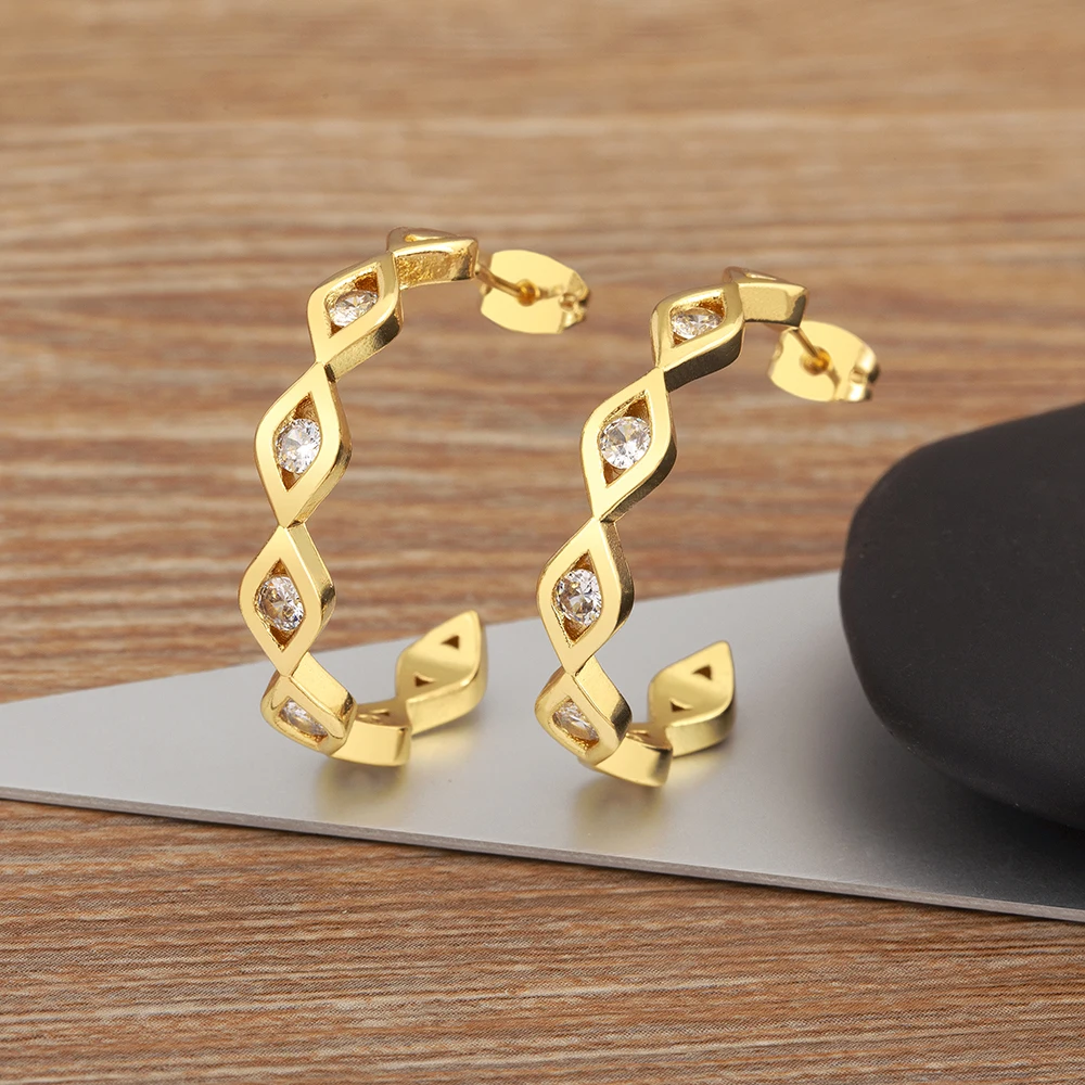 Nidin New Creative Design Shiny Zircon Evil Eye Big Circle Hoop Charm Drop Earrings For Women Girl Irregular Ear Jewelry Gifts