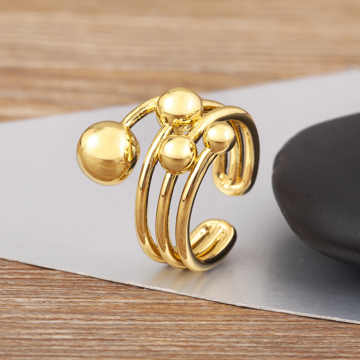 Nidin Classic New Design Spherical Multilayer Open Rings Adjustable For Female Male Hip-Hop Style Finger Jewelry Gift Wholesale