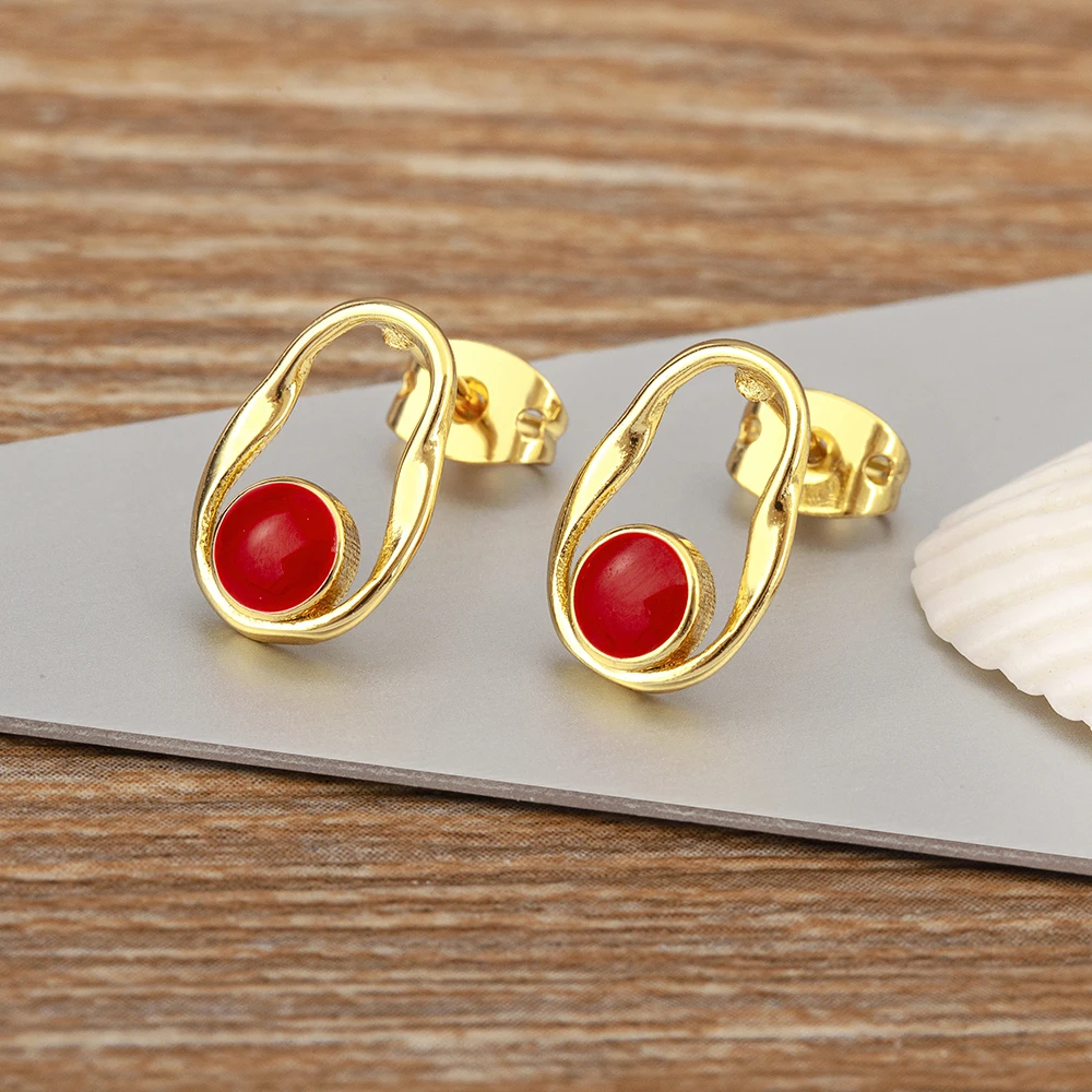 Nidin New Fashion Hollow Design Inlaid Red Zircon Charm Stud Earrings For Women Sweet Style Ear Jewelry Accessories Party Gifts