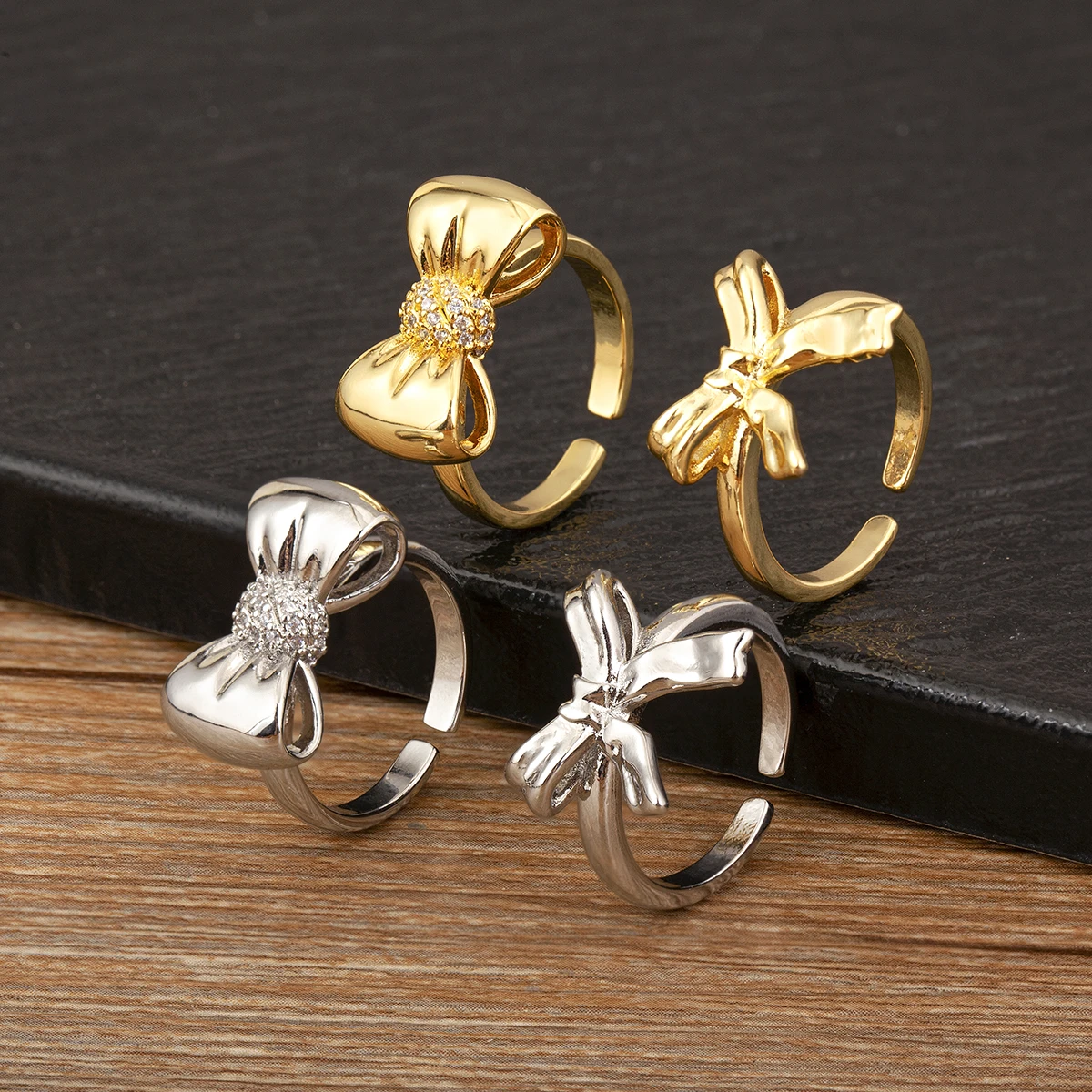 Nidin Romantic Fine Bowknot Shape Shine Zircon Open Rings Adjustable For Women Men Couples Elegant Aesthetic Finger Jewelry Gift