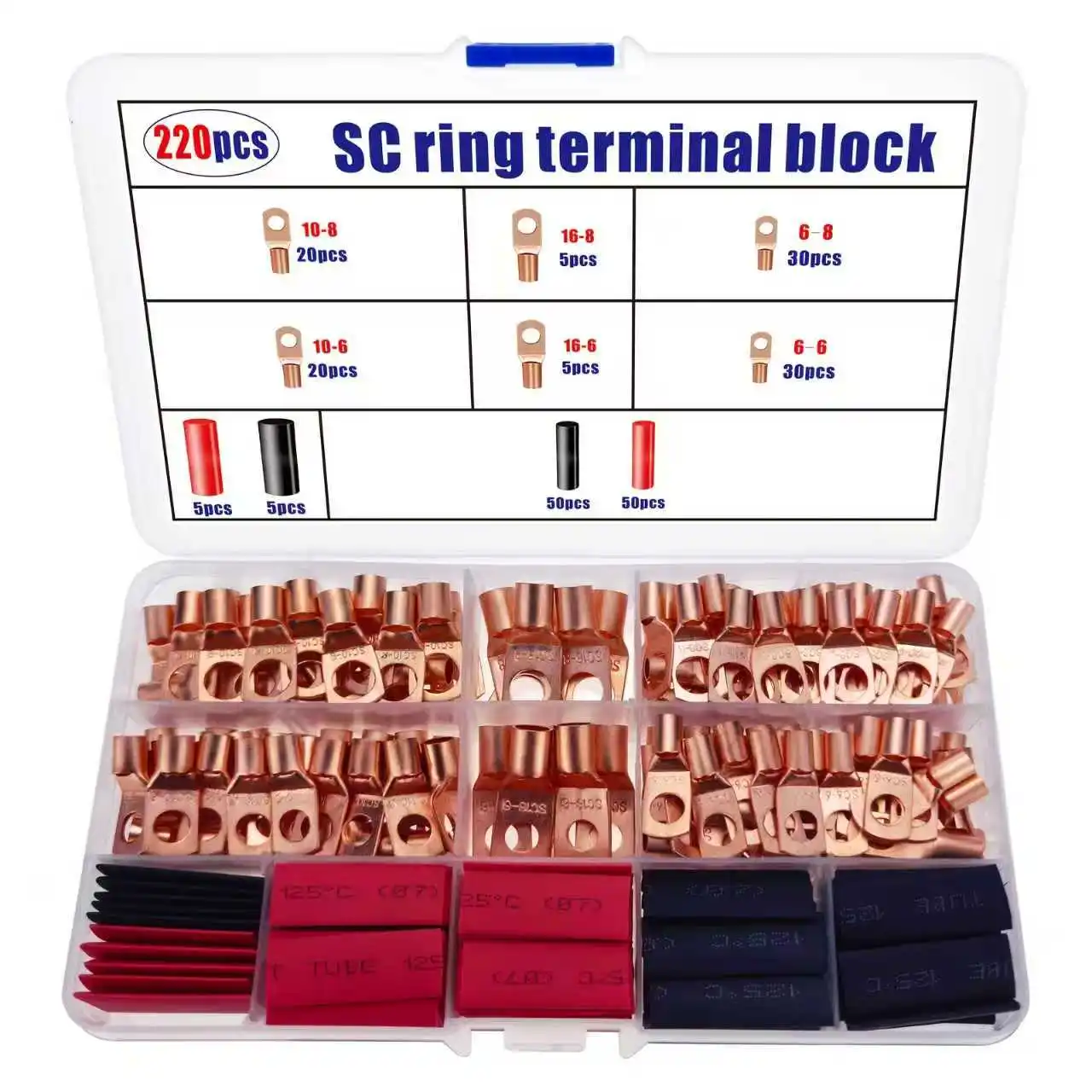 140/220pcs Battery Lug Ring Terminal Tool Kit for Power Distribution Cable Ends Connectors for Vehicles And Ships