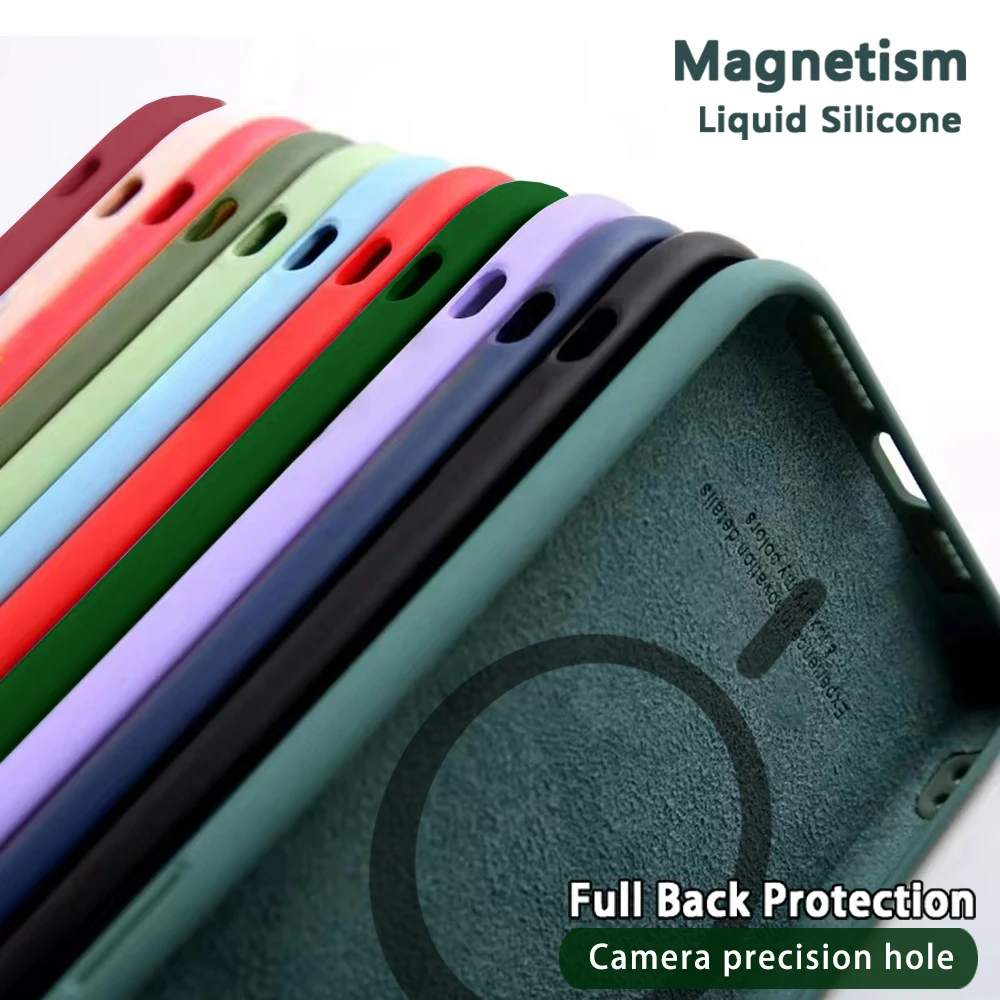 Magnetic Liquid Silicone Case For Iphone 14 13 12 Mini 11 Pro Max X Xs Xr Apple Magsafe Original Magnet Camera Precision Hole