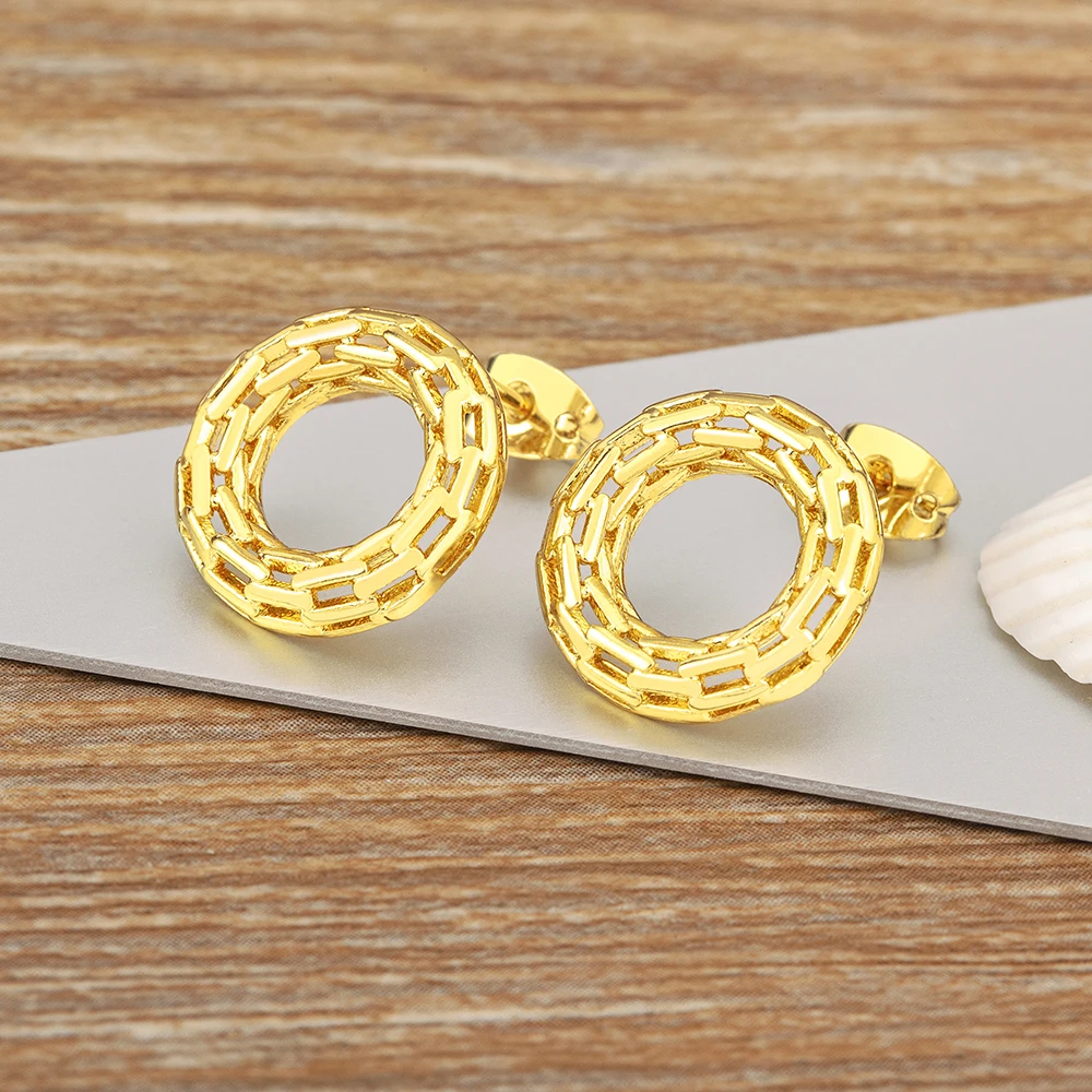 Nidin Korean Fashion Doughnut Shape Hollow Design Charm Stud Earrings For Women OL Style Jewelry Accessories Personality Gifts