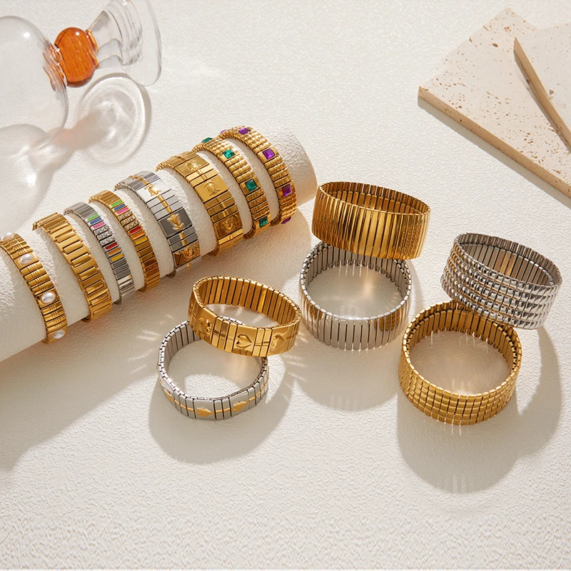 Loe| New Stretch Gold Bracelet Women Stainless Steel Zircon Pearl Chic Jewelry Korean Fashion Bulk Wholesale