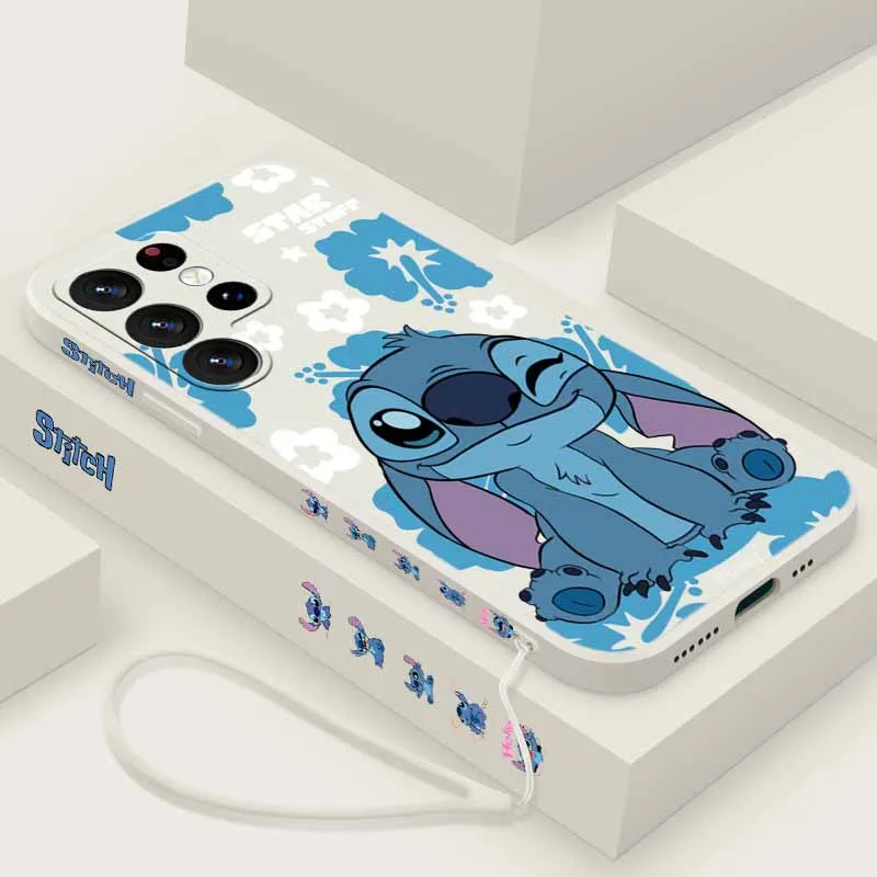 Cartoon Stitch For Samsung S26 S25 Edge S24 S23 S22 S21 S20 FE Ultra Plus Lite Liquid Left Rope Phone Case