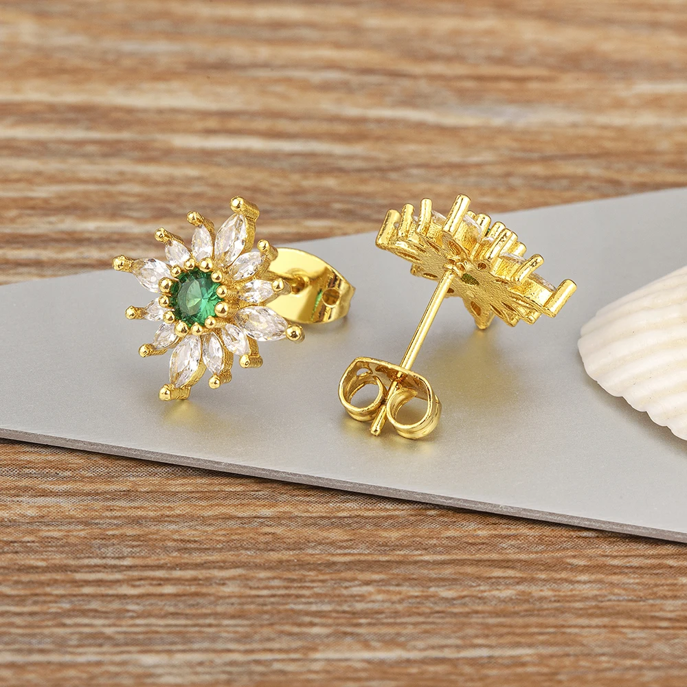Nidin New Popular Aesthetic Lucky Flower Shape Charm Stud Earrings For Women Sparkling Zircon Jewelry Wholesale Accessories Gift