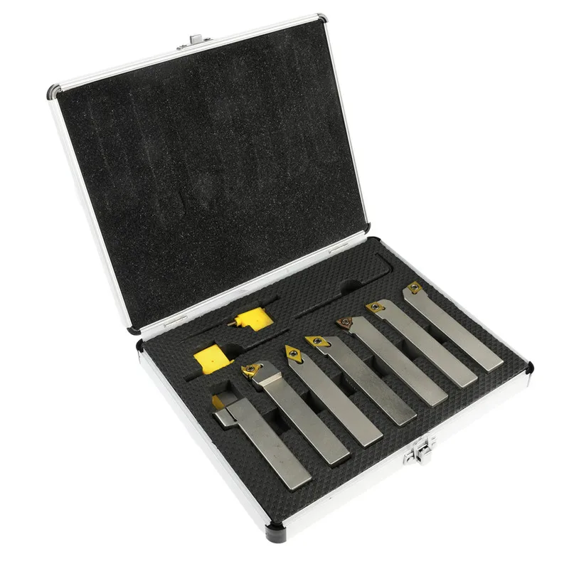 SANAI 7Sets of Nickel Plated CNC Lathe Turning Tool Holder 8mm 10mm 12mm 16mm 20mm with Carbide Inserts and Wrenches in Case Set