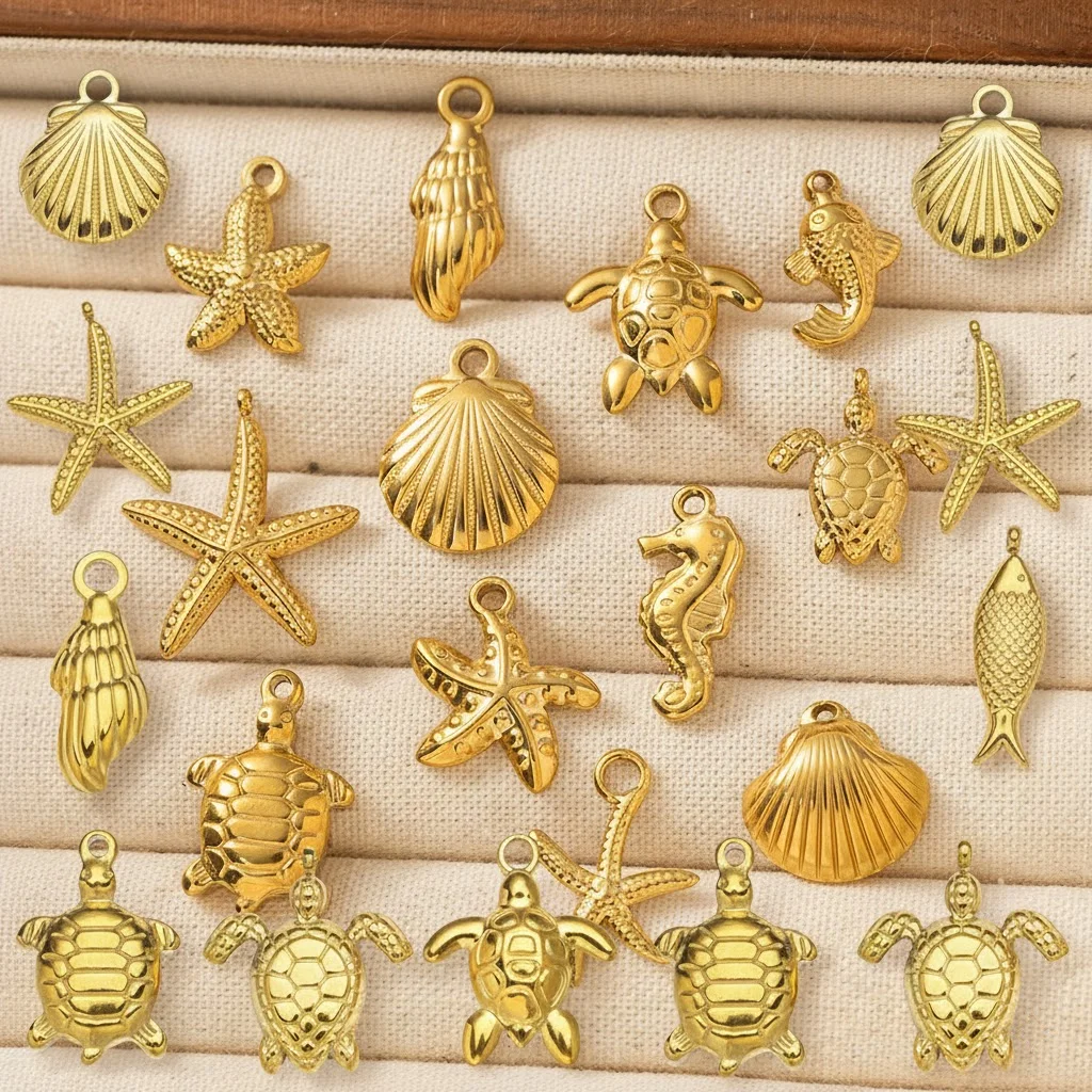 10pcs Stainless Steel Summer Beach Charms Starfish Seashell Conch Pendants for DIY Bracelet Necklace Earrings Jewelry Making