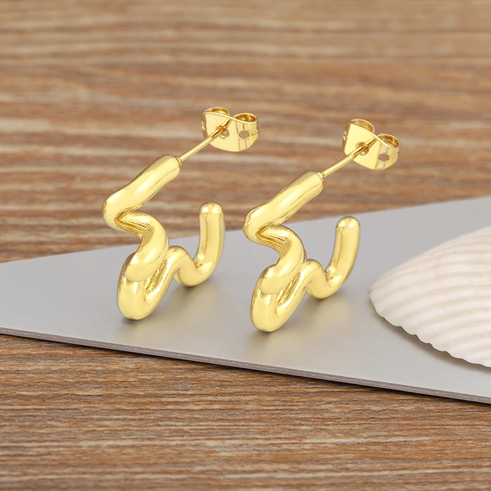 Nidin New C Shape Ball Gold Plated Hollow Smooth Earrings Hip-hop European and American Popular Jewelry Party Birthday Gift