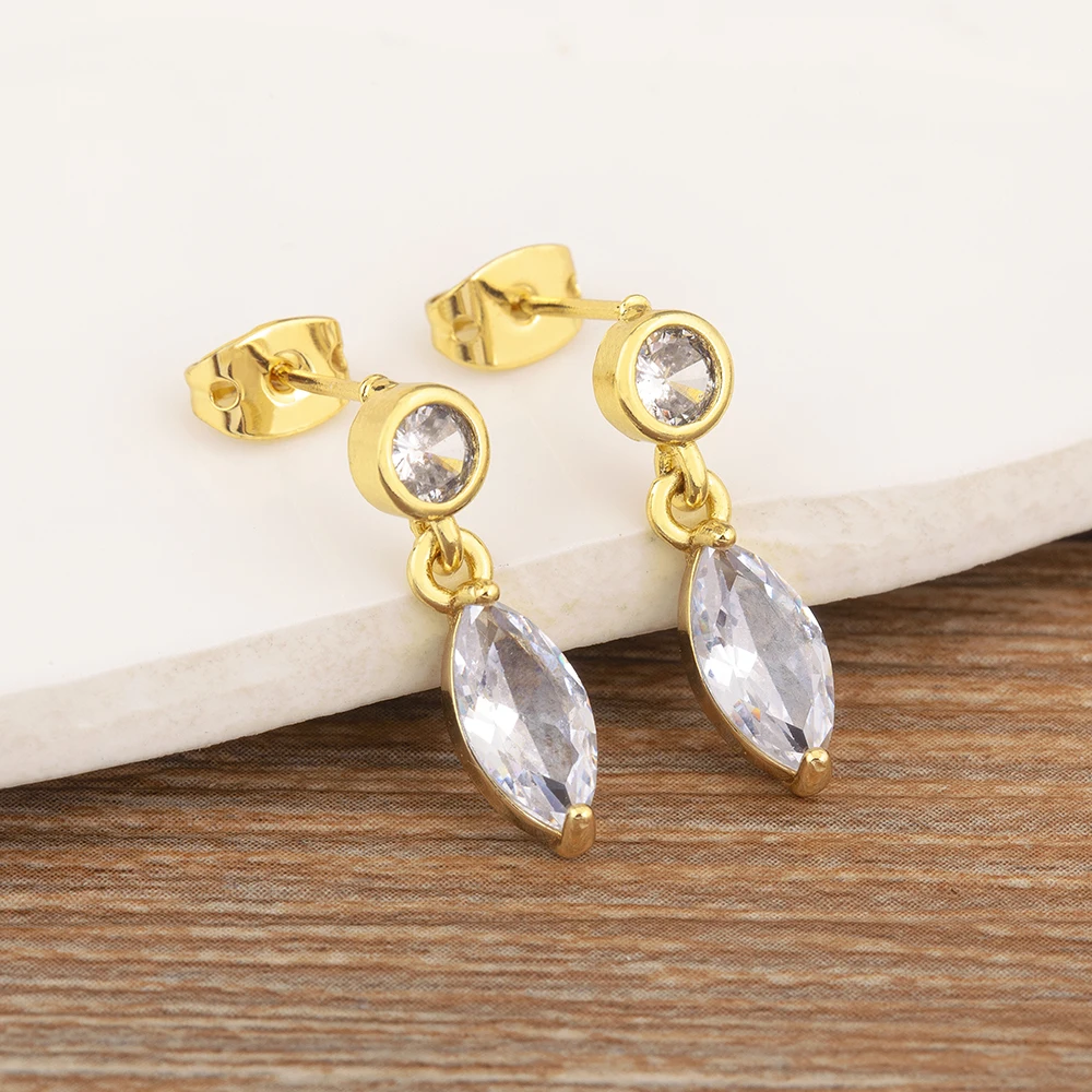 Nidin Korea Popular Teardrops Shape Shiny Crystal Zircon Charm Drop Earrings For Women Girl Elegant Ear Jewelry Birthday Gifts