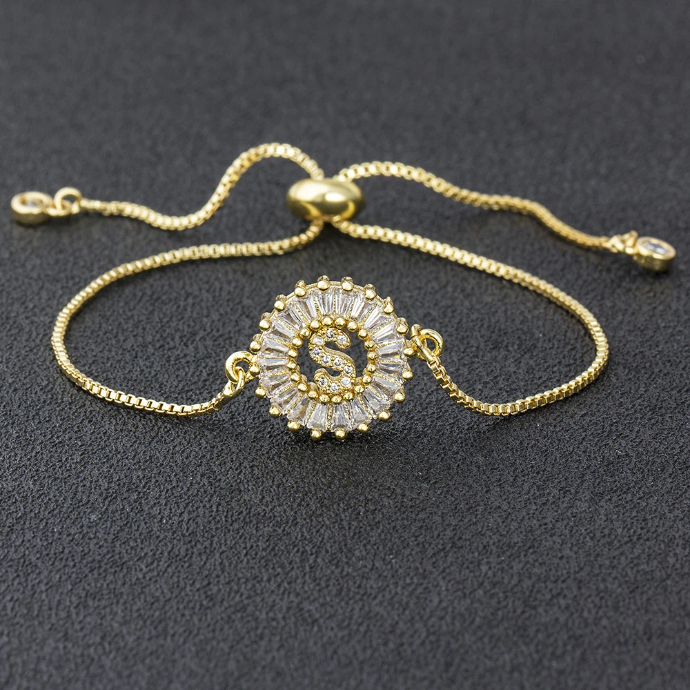 Nidin Hot A-Z Initial Micro Pave Cubic Zircon Letter Men Charm Chain Bracelets Adjustable For Women Lovers Jewelry Gift Bangle