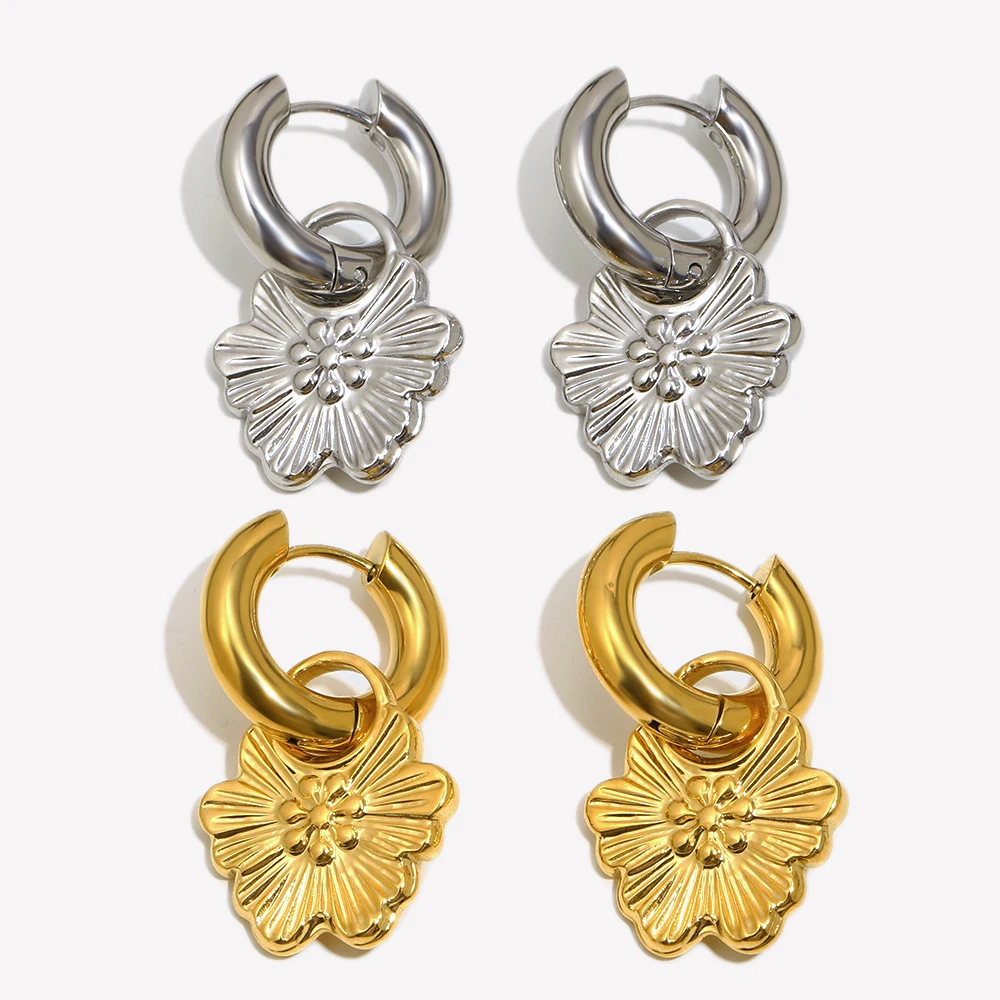 E.B.belle Fashion Flower Hoop Stainless Steel Earring Tarnish Free Niche Jewelry Accessories Women's Gift Birthday Party