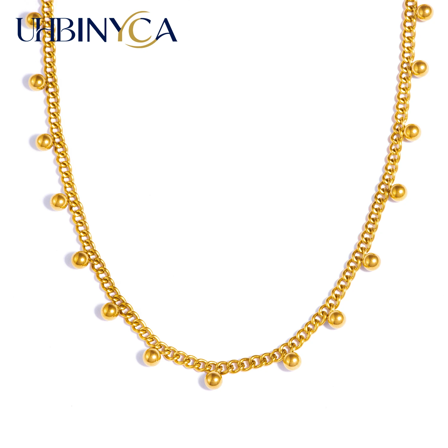 Bead Chain Necklace for Women, Hypoallergenic 18K Gold Plated Stainless Steel 40+5cm, Minimalist Dainty Jewelry Gift