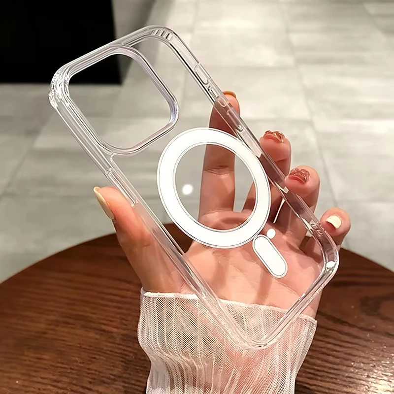 For Magsafe Wireless Charge Transparent Case For iPhone 17 Pro 11 12 13 14 15 16 Pro Max Luxury Magnetic Shockproof Bumper Cover