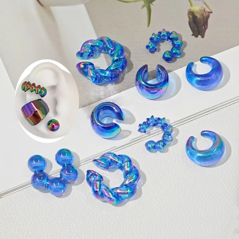 Fashionable Colorful Ice Penetrating Earrings Spring and Summer Jelly Color C-type Fried Dough Twists Women's Earclip