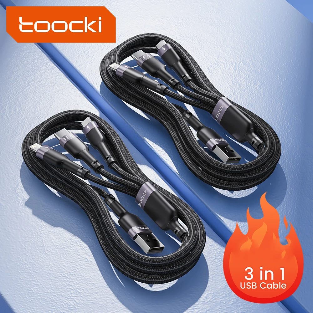 Toocki 3-in-1 USB Charging Cable Micro USB Type-C Cable for iPhone 14 13 for Samsung Huawei Xiaomi Mobile Phones Data Cords